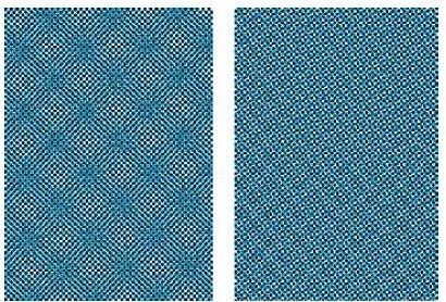 在某些网屏角度叠印的情况下,这种网纹在细网线加网的条件下还可为视觉接受。但以另一些网屏角度叠印的情况下,就会和其他颜色产生冲突,将会产生非常难看的大块网纹,这种现象就是印刷撞网,也就是通常所说的网花。这种网纹称为莫尔条纹或龟纹。