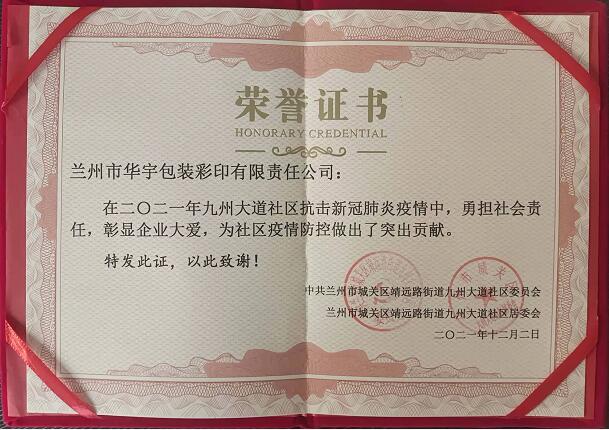 2021年10月18日,兰州突发新冠肺炎疫情来势汹汹,疫情就是命令,防控就是责任。面对疫情蔓延,做为甘肃包装生产行业龙头企业,防控责任极大,公司领导高度度重视疫情防控工作,积极组织、周密部署、迅速行动,动员组织全体干部职工开展疫情防控,认真做好各项疫情防控工作,确保各项工作有效落实,疫情防控工作取得良好效果。 通过全方位把控将疫情风险降至最低。现将工作情况报告如下: 一、及时响应行动,加强统筹部署 在公司总经理领导下,公司各部门快速响应,第一时间成立疫情防控工作领导小组,公司领导班子冲锋陷阵,不畏艰险,突围苦难,全力负责公司的疫情防控工作,并细化防控工作领导小组各人员的工作职责。在公司防控领导工作小组的统筹部署下,公司全面展开防控工作,迅速落实防控措施。 二、落实防控措施,织密防疫安全网 按照上级文件精神,及我公司的实际情况,编制《疫情防控及复工复产工作方案》和《疫情防控应急预案》,严格按照方案开展工作。做到准备充足、行动有序、执行有力,年前,疫情初露端倪,及时察觉疫情风险,抢先购置一批防空物资,为疫情防控提供坚强基础。 1、防疫物资准备:公司通过多个渠道足量采购口罩、酒精、消毒液、洗手液、体温枪等物资进行配发,艰难的度过了公司物资配发困难期、保障全体员工个人的疫情防护。 2、建立职工档案,每天了解职工健康状况,并定时对在岗职工测量体温登记建档。 3、开展健康教育。复工前开展疫情卫生防护防病相关知识,教育员工搞好个人卫生,养成勤洗手等良好习惯,特别是班前、班后应洗手,提高员工预防疾病的意思。 4、开展健康教育。复工前开展疫情卫生防护防病相关知识,教育员工搞好个人卫生,养成勤洗手等良好习惯,特别是班前、班后应洗手,提高员工预防疾病的意思。 5、确保工作环境清洁卫生,保持室内空气流通。每天开启门窗,通风换气。每天上班前使用消毒水对全厂进行消毒。 三、复工复产期间严密加强疫情防控工作保障公司安全生产 根据兰州市人民政府办公室关于印发《做好疫情防控期间重点项目和重点企业复工复产的工作方案》的通知精神,为切实做好公司新型冠状病毒肺炎防控工作,阻击疫情,确保公司在复工复产过程 中安全、有序、高效、稳妥地进行,结合公司实际,下发了公司《兰州华宇包装彩印有限责任公司关于防范新型冠状病毒感染肺炎疫情的复工工作方案》和《关于进一步明确复工复产前疫情防控工作职责的通知》等文件,成立工作小组,明确工作小组各自的工作职责,细化工作任务,认真开展疫情防控工作,为恢复公司经济效益做好复工复产工作。 四、外防输入、内防反弹常态化疫情防控 针对国内地区疫情态势发展趋于稳定,疫情风险等级降至最低的情况下,公司疫情防控领导小组依旧将疫情防控做为第一任务来抓。面对国内部分地区疫情反弹,公司立即响市政府、市防疫领导小组号召,详细排查员工、家属及可能存在接触史,全力阻断疫情传播,确保了公司安全平稳有序开展。重新购买了足量的防护物资下发到生产车间,有效的保障了公司车间一线员工的健康。根据市政府的防控要求,结合疫情防控新形势对整体防疫工作进行再安排、再部署,转发《兰州市疫情防控指南》、《关于进一步加强疫情防控工作的通知》和《兰州市关于加强常态疫情防控工作要求》等通知。公司疫情防控小组进一步落实常态化疫情防控举措,按照“外防输入、内防反弹”的原则,严格实行疫情“零报告”,保证信息摸排、汇总、分析研判工作科学到位。 当前,疫情随着形势越来越趋向平和,全市已取得了阶段性的胜利,但是越是这个时候越不能放松警惕。立足疫情防控的新态势、新阶段,公司疫情防控领导小组将继续落实各项防控措施,严抓疫情防控工作不松懈,冬季是流感等传染性疾病高发季节,面对新冠肺炎与流感“双流行”风险,常态化防控工作一刻也不能放松。公司防控小组将继续保持战斗状态,坚持做好疫情防控工作,彻底打赢这场疫情防控阻击战,喜获“为社区疫情防控做出突出贡献”表彰。
